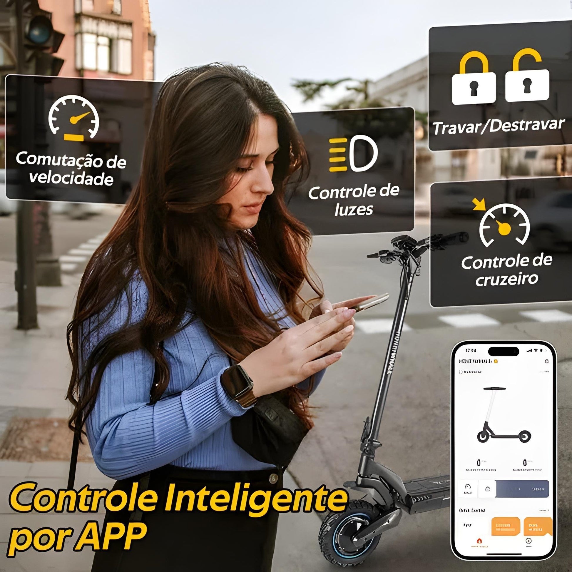 🚀 Motores Duplos de 750W – Alcança até 60 km/h e supera inclinações de 15°, suportando até 120 kg.